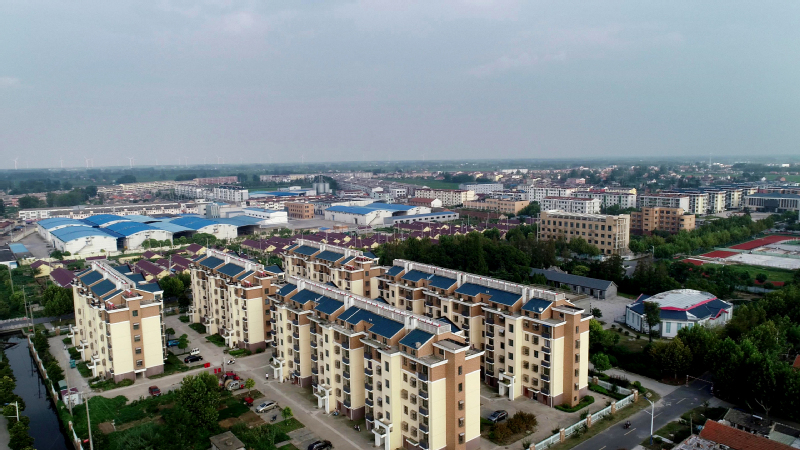 如今,文明實踐志愿服務在淮海已呈新常態,他們在美麗農場建設、脫貧攻堅、助老愛殘、保護環境、文化服務等方面發揮著重要作用,譜寫出新時代文明實踐淮海“新篇章”。圖為淮海農場公司新型小城鎮。
