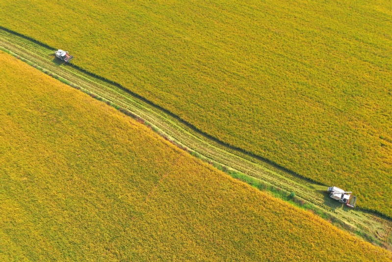 秋風拂過,稻菽飄香。眼下,正值水稻收割季節(jié),云臺大地一片金黃。10月22日,蘇墾農發(fā)云臺分公司6000余畝水稻開鐮收割,在田間奏響“豐收曲”。機械轟鳴,沉甸甸的稻穗被攬入“懷中”,收割、脫粒、裝車,飽滿的谷粒傾瀉而下,被裝進運糧車里,工作人員美滋滋地看著田間的稻谷被收割殆盡,空氣中彌漫著稻谷的醇香。“今年我們的水稻長勢好、產量高,和我們以‘繡花功夫’狠抓精細化管理是分不開的。”云臺農場公司黨委副書記、蘇墾農發(fā)云臺分公司總經理宋光鋒在收割現場會滿意地說道。鄉(xiāng)村振興的核心是產業(yè)興旺,現代農業(yè)是云臺產業(yè)興旺的中堅力量。近年來,蘇墾農發(fā)云臺分公司堅持標準化生產方式,將技術、人才、信息等資源要素“引”向農業(yè)、“流”向企業(yè),充分發(fā)揮國有農業(yè)企業(yè)帶頭作用,為農業(yè)產業(yè)發(fā)展注入新的活力。據了解,今年“三秋”,云臺將投入小型收割機20臺用于水稻收割,并投入播種機13臺,預計本月28日全部收割完畢,稻茬小麥將于31日播種結束。下一步,云臺將扎實做好秋收秋種秋管工作,牢牢守住“糧袋子”,為推進鄉(xiāng)村振興和糧食安全貢獻云臺力量。